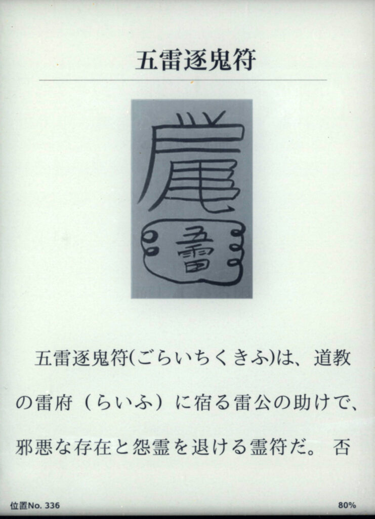 名前「五雷公符」「文字の色、紙の色、朱色、赤い紙」効果「雷様の護符、悪い存在、悪い場所を浄化し良い気で満たしてくれる効果がある」※気になる場所に目線よりも上に貼る必要がある。