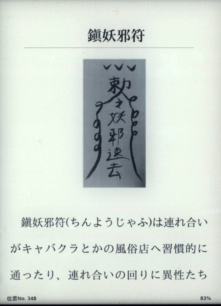 名前「鎮邪符」「文字の色、紙の色、朱色、赤い紙」「効果、相手の浮気防止効果を期待出来る。」