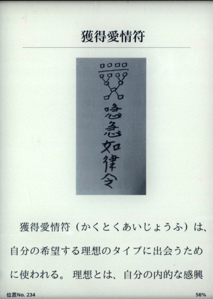 名前「愛情符」「文字の色、黒」意味「自身に合った男性、女性に出会う護符。」※けして希望通りの相手に出会う保証は無いので理解の上使用する事